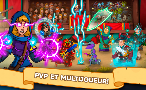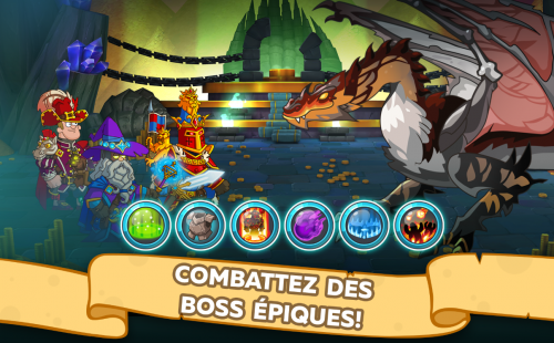 Les combats contre les boss sont particulièrement intéressants: le joueur peut y utiliser activement des compétences puissantes pour renverser le cours de la bataille. Il est crucial de bien planifier l'équipement de vos héros pour maintenir l'avantage après chaque étape franchie et gagner des récompenses précieuses telles que de l'or, de la nourriture ou de l'équipement pour améliorer l'armée.