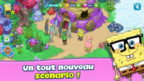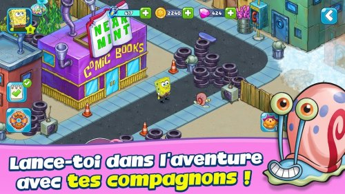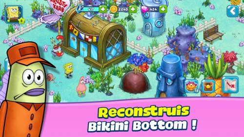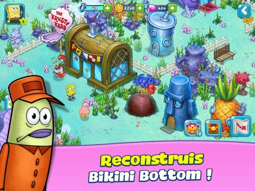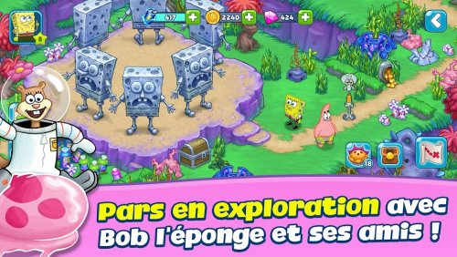 Bob l'Éponge : Aventures est un jeu passionnant de simulation et d’aventure. Vous devrez reconstruire Bikini Bottom, détruit par une masse gélatineuse à cause de l’expérience ratée de Plankton, en collaborant avec les personnages bien-aimés de l’univers de Bob l’Éponge. Votre objectif est de rétablir l’ordre étape par étape en construisant, fabriquant et accomplissant des missions uniques.