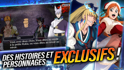Formez des équipes de trois personnages, en réunissant des héros de différentes arcs narratifs. Chaque combinaison ouvre de nouvelles possibilités stratégiques. Les personnages possèdent des traits uniques et la capacité de déclencher de puissantes attaques spéciales, comme le bankai, avec les voix originales des seiyuus de l’anime.