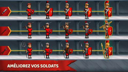 Grow Empire: Rome est un mélange captivant de jeu de stratégie et de Tower Defense, où vous incarnez le leader de la grande Rome antique. En partant d'un petit village, vous devez le transformer en un puissant empire capable de résister à des vagues d'ennemis. Votre objectif est de renforcer vos murs et de créer une armée invincible pour protéger vos terres et conquérir de nouveaux territoires. Fait intéressant : le jeu propose des batailles contre des forces égyptiennes, gauloises, carthaginoises et bien d'autres.