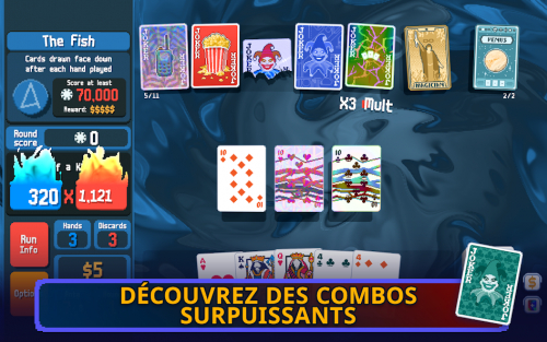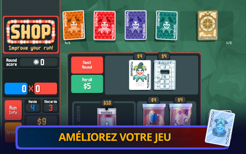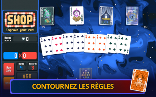 Chaque tour consiste à sélectionner des cartes pour créer une “main” solide. Vous pouvez écarter les cartes inutiles et en tirer de nouvelles, dans l’espoir de former une meilleure combinaison. Remporter une manche vous rapporte des points, qui peuvent être convertis en monnaie virtuelle.