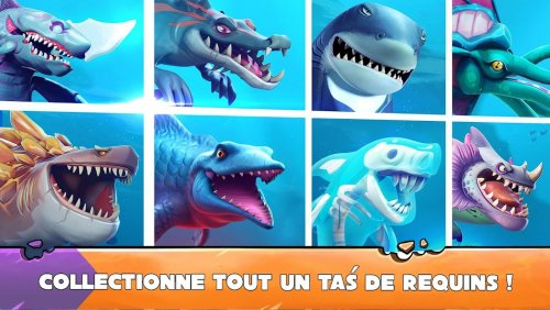 Le jeu propose plus de 20 requins uniques, chacun avec ses capacités spéciales. Vous pourrez améliorer leurs caractéristiques, notamment la vitesse, la morsure et l'accélération.