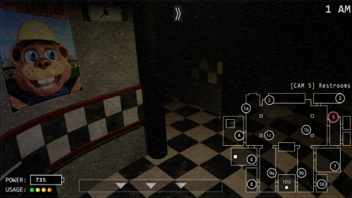 Votre seul refuge est une petite salle de contrôle équipée de moniteurs qui affichent les caméras des différentes pièces de la pizzeria. Surveillez attentivement les moindres mouvements des animatroniques et verrouillez les portes au bon moment pour empêcher leur intrusion.