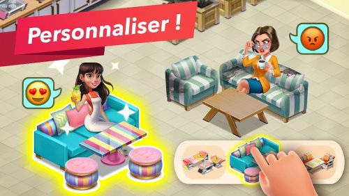 La qualité de l'équipement impacte le temps de préparation et d'attente des commandes. Pour une gestion efficace, choisissez soigneusement votre personnel. Avec une équipe soudée de cinq personnages et une gestion appropriée, votre établissement deviendra un restaurant d’élite. L'utilisateur peut prendre des décisions de design concernant la couleur, la forme et le style des objets d'intérieur et de décoration. Le chef préparera les plats les plus raffinés.