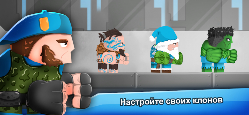 Clone Armies : une arcade d'action avec un scénario original et des rebondissements inattendus. Le jeu est réalisé en graphismes 2D, rappelant les premiers jeux informatiques. Des paysages familiers, des personnages simples et une mécanique classique créent une atmosphère idéale pour une immersion totale dans le gameplay dynamique.