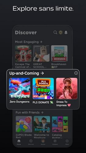 Sur Roblox, vous décidez comment passer votre temps — en explorant la stratégie ou en vous immergeant dans des expériences de jeu de rôle. Avec la monnaie virtuelle Robux, vous accédez à des fonctionnalités exclusives, mais l'essentiel reste que la plateforme récompense vos idées et non vos dépenses. Roblox vous inspire à expérimenter et stimule votre imagination, transformant chaque pensée en une nouvelle réalité virtuelle.