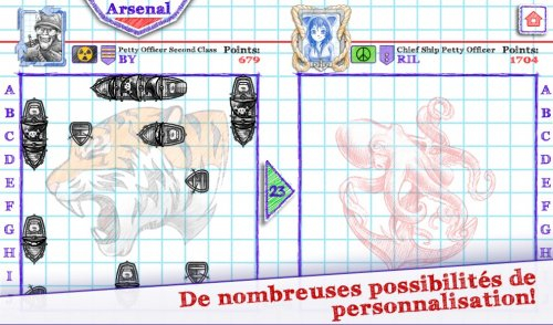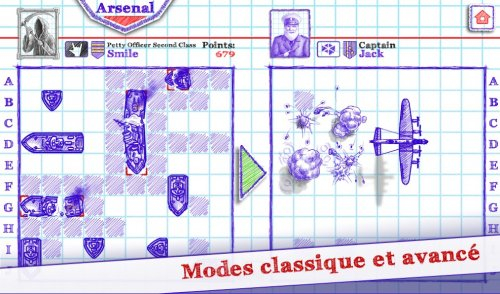 Le design de l’application est conçu pour rappeler au maximum la version originale. Tous les éléments semblent dessinés au stylo bleu sur une feuille quadrillée, recréant ainsi une ambiance de souvenirs scolaires. Cependant, les développeurs ont ajouté plusieurs améliorations. Désormais, vous avez accès à un arsenal élargi, incluant la possibilité de réaliser des frappes aériennes.