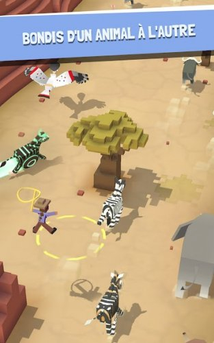 Le gameplay principal est axé sur des courses effrénées au milieu de troupeaux d'animaux sauvages. Vous balancez votre lasso, sautez d'un animal à l'autre, évitez les obstacles et essayez de tenir le plus longtemps possible.