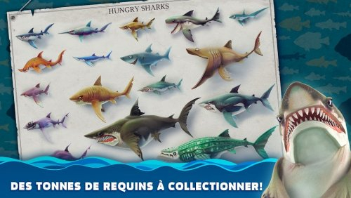 - Prenez le contrôle de nombreux requins. Plus de 40 types de requins sont à votre disposition, allant des petits requins de récif aux gigantesques mégalodons, voire des espèces fantastiques comme les requins zombies. Chaque requin possède des compétences uniques et un style de jeu distinct.