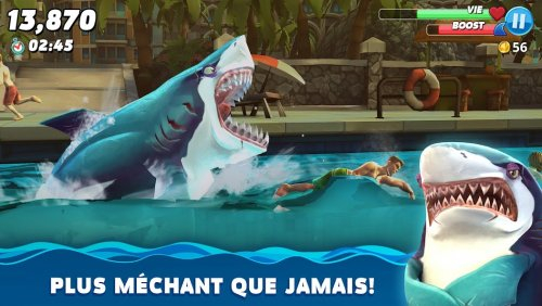 - Des possibilités d’amélioration infinies. Améliorez la vitesse, la puissance de morsure et l’accélération de vos requins pour les rendre encore plus redoutables. Équipez-les d'accessoires originaux comme des jetpacks, des parapluies et même des casques stylés.