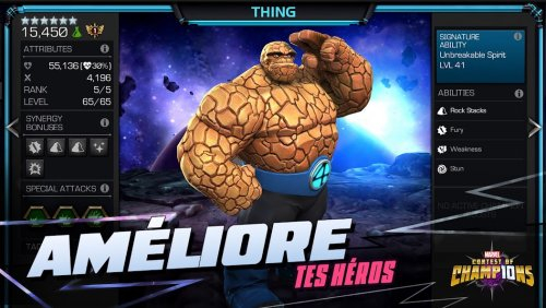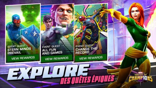 Vous aurez accès à des personnages légendaires tels que Captain America, Iron Man, Deadpool, Wolverine, Hulk, Thanos et Kang le Conquérant. Leurs pouvoirs uniques et styles de combat vous permettent de créer une équipe de rêve capable de s’adapter à tout ennemi.