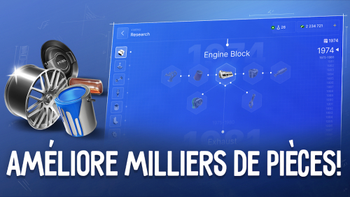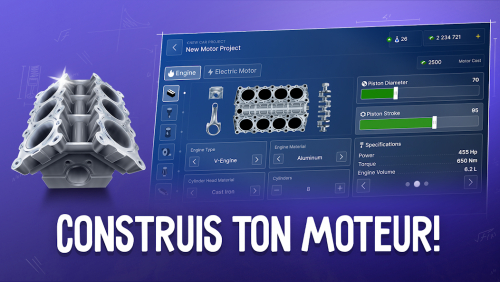 Chaque étape du développement automobile exige une attention aux détails, et le point fort du jeu est la création de moteurs uniques. Vous pouvez choisir n’importe quelle configuration, des quatre cylindres économiques aux puissants V12.